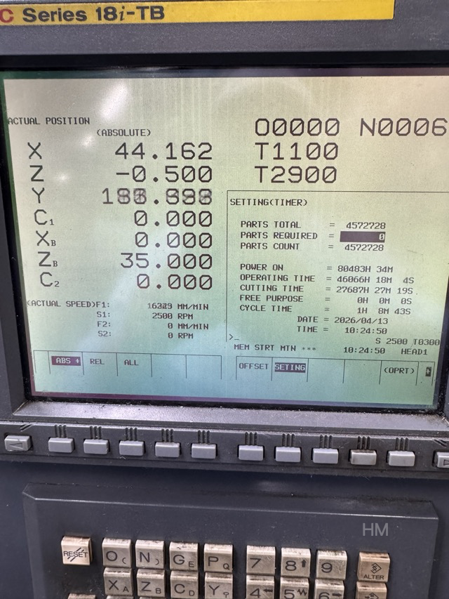 Control system: Fanuc, 18i-TB series,